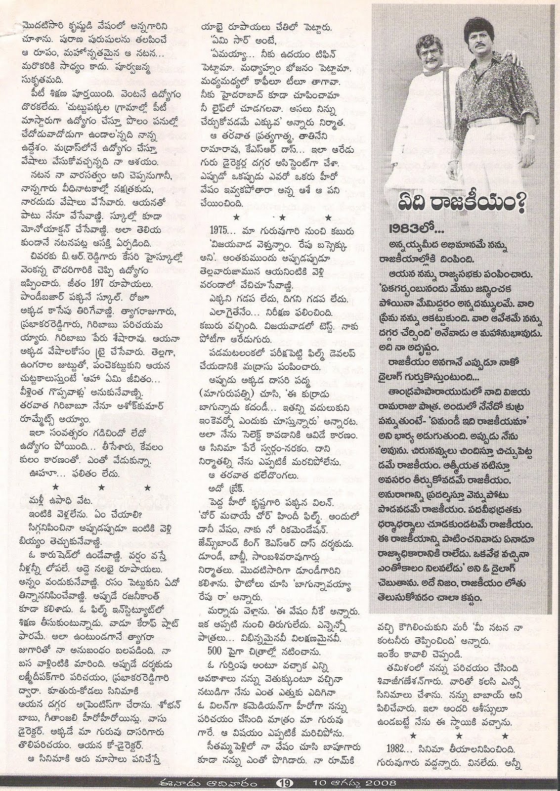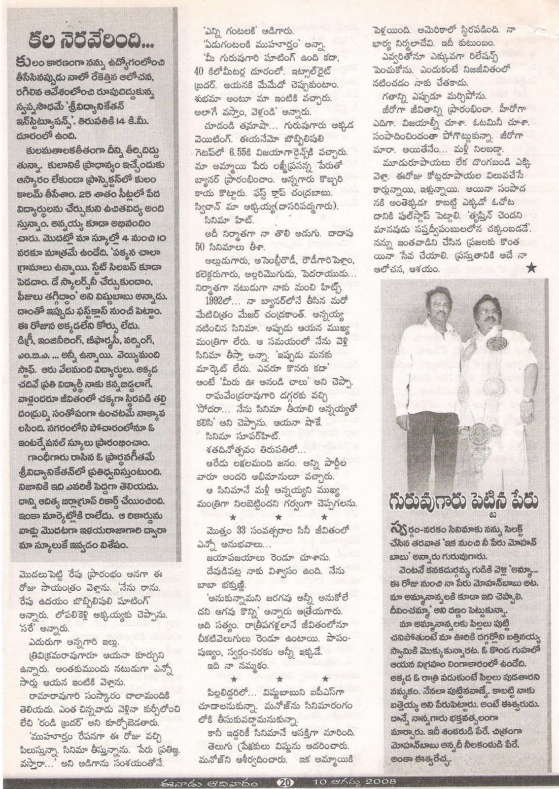 ఈ సందర్భంగా ఆ చిత్ర విశేషాలు…. ఆర్టిస్టు అయిన ఏడేళ్లకే సొంతంగా చిత్ర నిర్మాణసంస్థను నెలకొల్పడం నిజంగా ఆ రోజుల్లో ఒక సాహసమే. అందుకే ఈ విషయమై తన గురువు దాసరిని కలిసి ఆయన సలహా అడిగారు మోహన్బాబు. ‘ఆరి ్టస్ట్గా బిజీగా ఉన్నావు.. పేరు తెచ్చుకుంటున్నావు.. ఇలాంటి సమయంలో నీకు చిత్రనిర్మాణం అవసరమా?’ అని ఆయన అన్నారు.