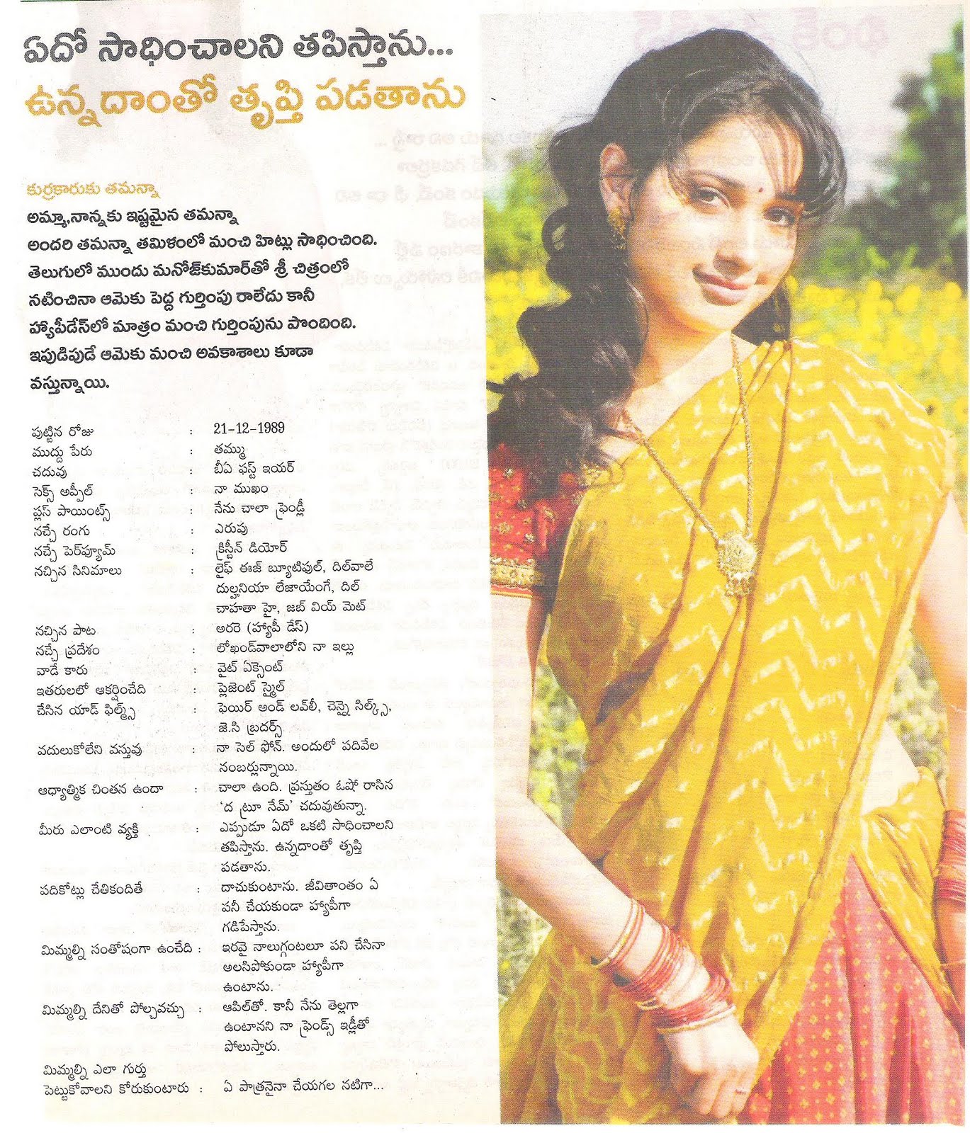• కధానాయిక ‘తమన్నా’