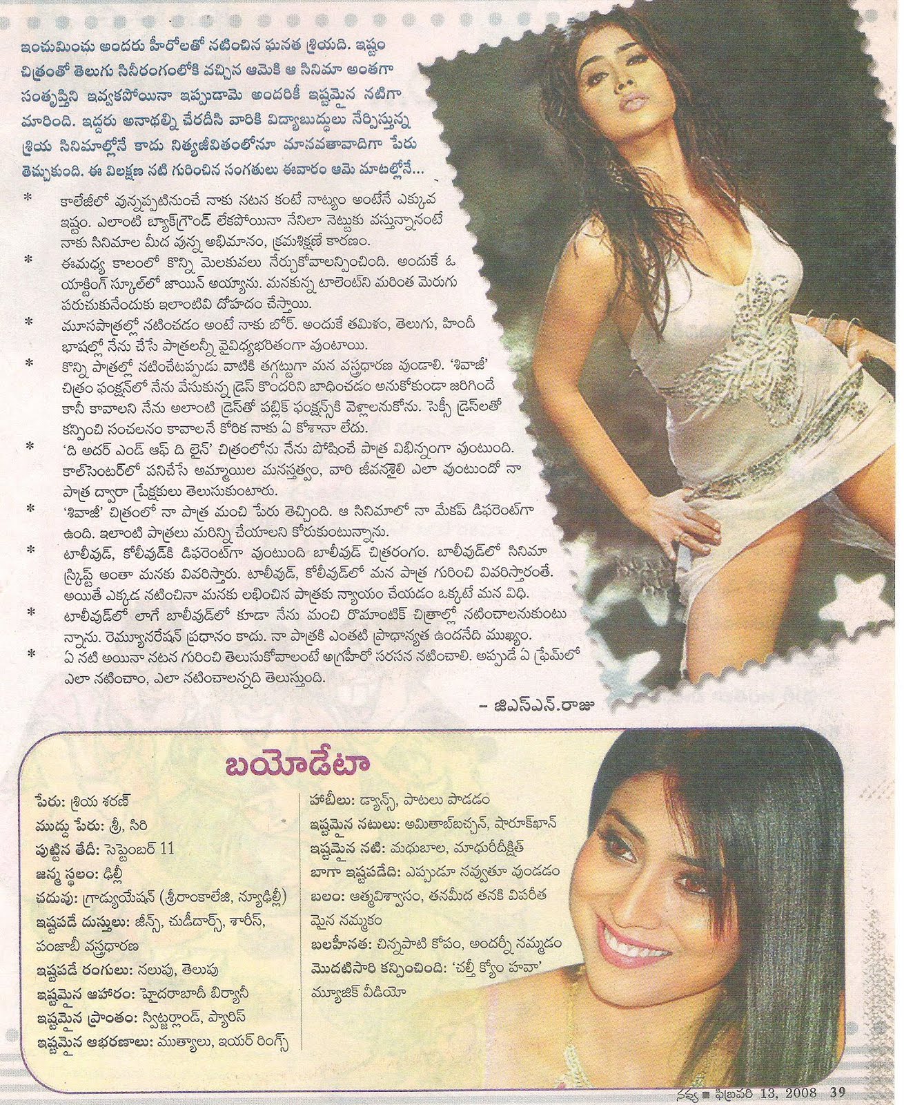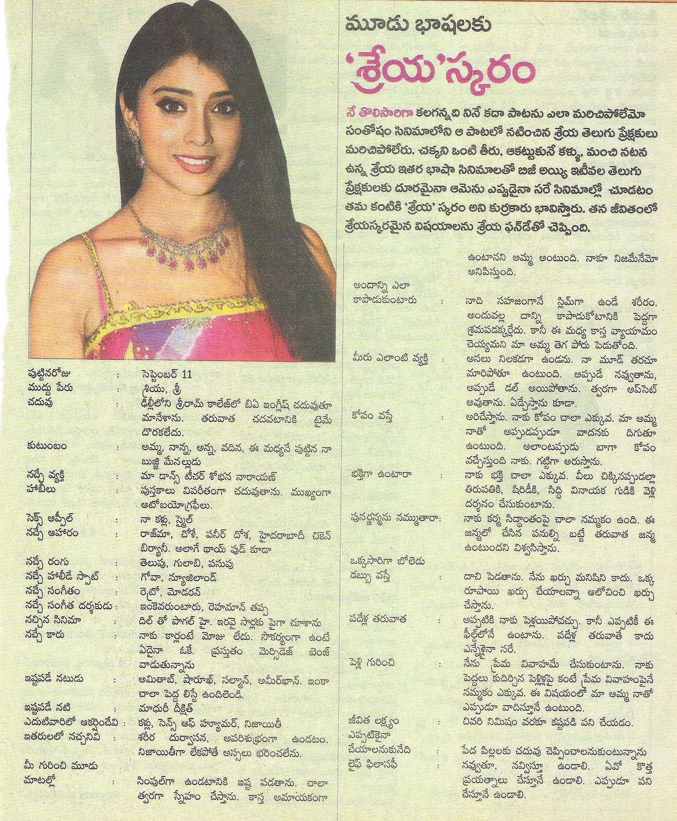 కధానాయిక ‘శ్రియ శరన్’