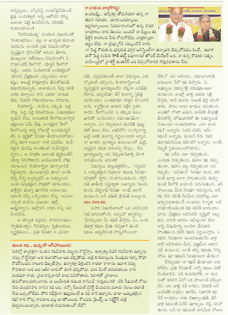 * మీ కథలకు, ఆలోచనలకు మొదటి శ్రోతగా మీ శ్రీమతి ఉండేవారని, ఎప్పుడు షూటింగ్కి వెళ్లినా అమ్మానాన్నల ఆశీస్సులు తీసుకుని వెళ్లేవారని చెబుతుంటారు…