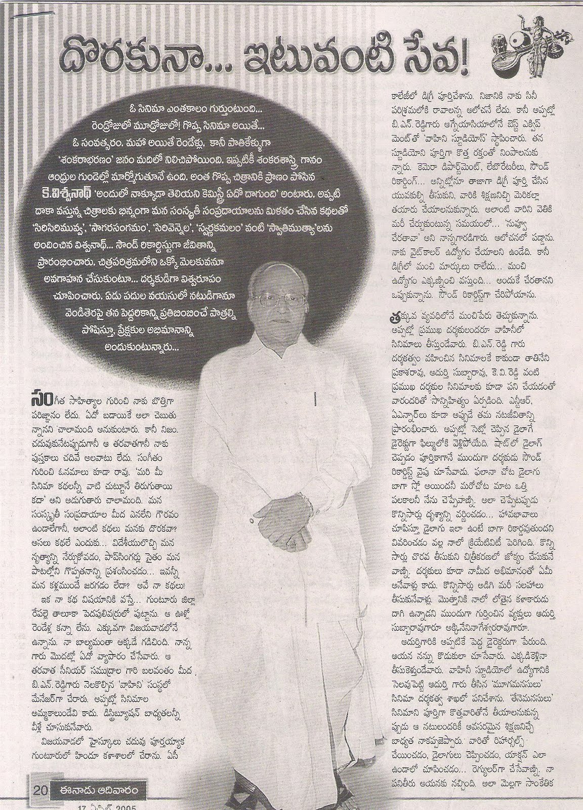 ‘సిరిసిరి మువ్వ’ నుంచి ఓ బ్రాడ్ లైన్ పెట్టుకున్నా. సంగీతం, నృత్యం మృగ్యం అయిపోతున్నాయి. వాటి ప్రాధాన్యం తగ్గిపోతోంది అనే బాధ నాలో ఎక్కువగా ఉండేది. దీన్ని ఎలాగైనా పునరుద్ధరించడానికి… ఇక్కడ పునరుద్ధరణ చాలా పెద్ద పదం అనుకుంటా. నా వంతు బాధ్యతగా ఏదైనా చేయాలి అనే ఆలోచనతో కథలు అల్లుకున్నా.