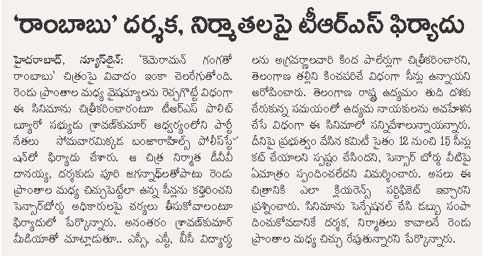 ‘కెమెరామెన్ గంగ తో రాంబాబు’ చిత్రం వివాదం