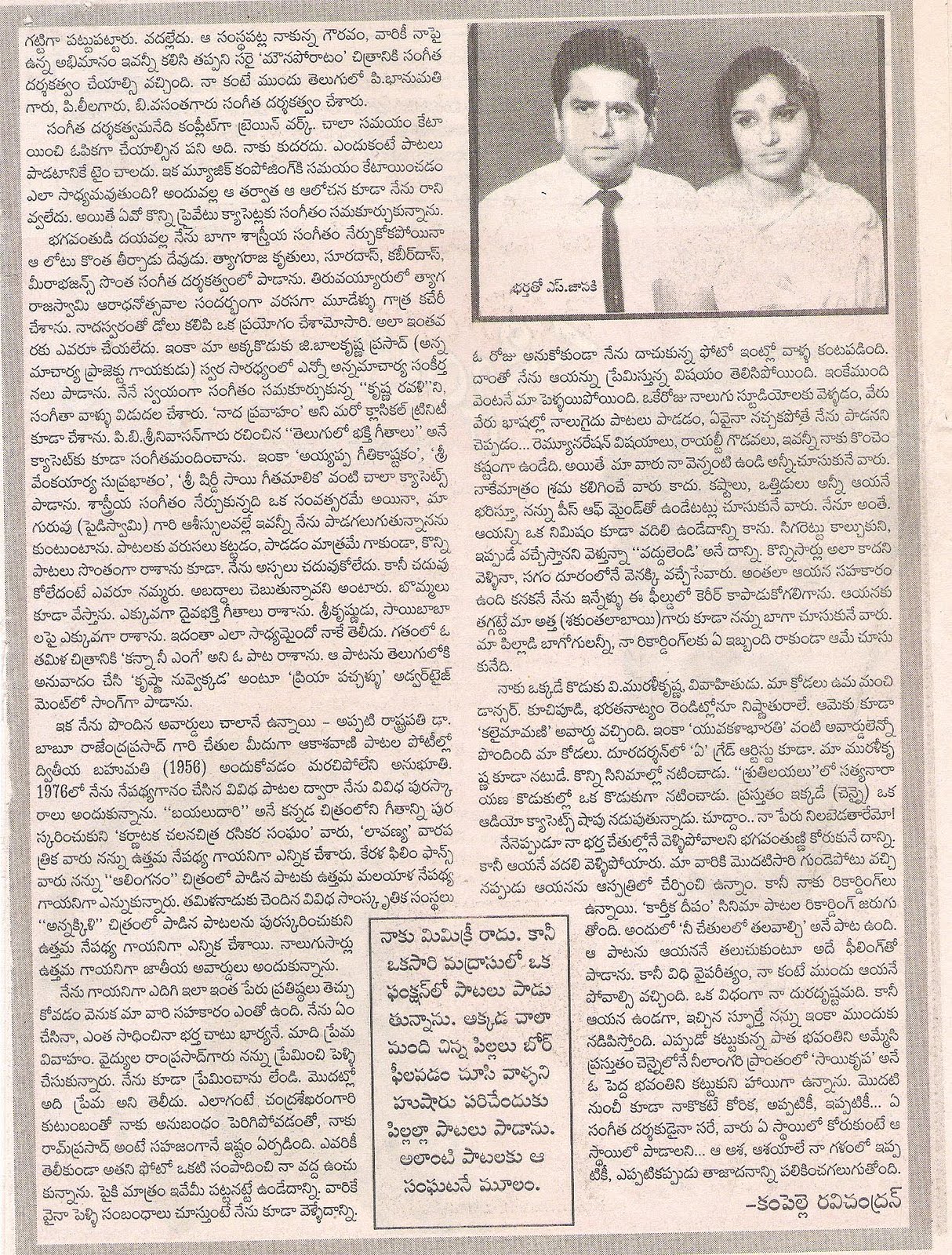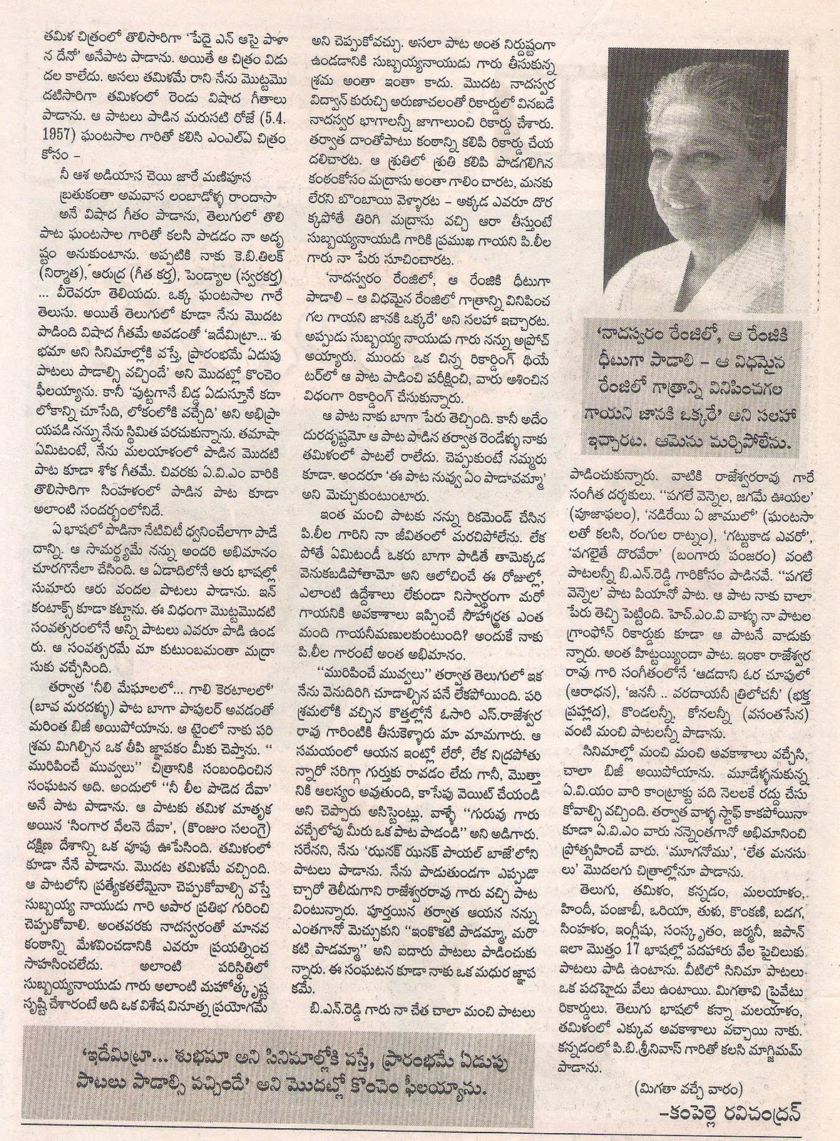 రెండోసారి నేపథ్యగానం చేసిన సినిమా ‘ఎం.ఎల్.ఎ.’ అందులో ఘంటశాల గారితో కలిసి గానం చేసిన ఆ పాట కూడా శోక గీతమే ‘నీ యాసా ఆడియాసా, చేజారే మణిపూసా…