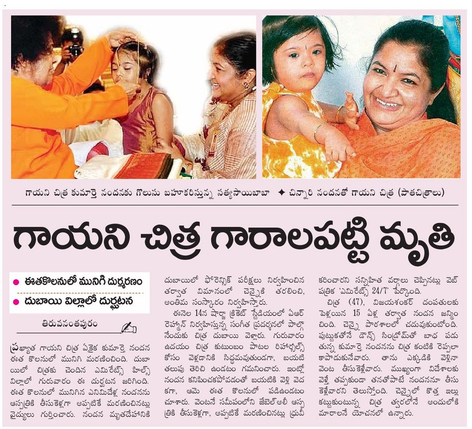 గాయని చిత్ర కుమార్తె నందన మృతి