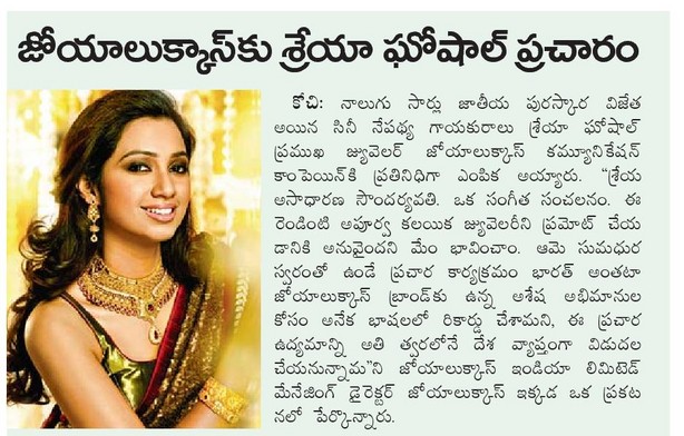 గాయని ‘శ్రేయ ఘోషెల్’ బిజినెస్ అంబాసిడర్
