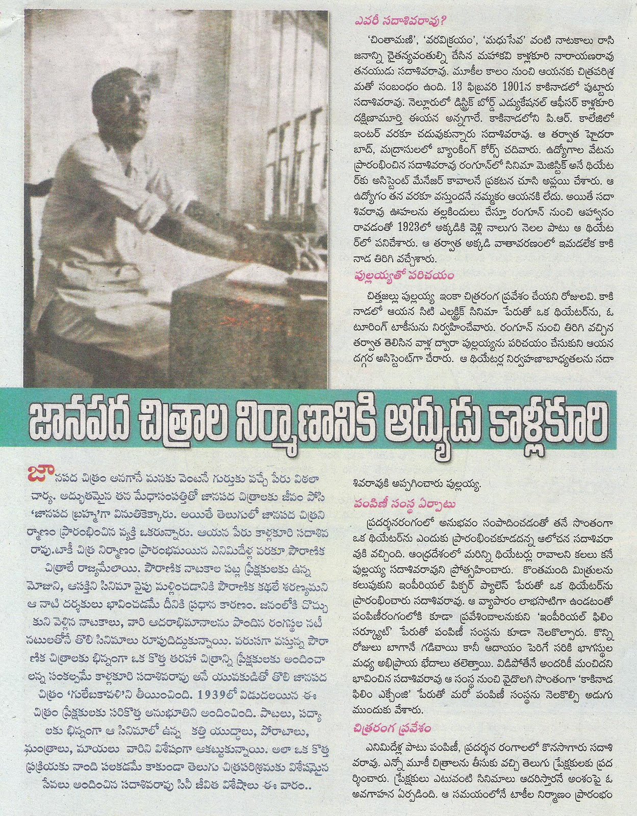జానపద చిత్రాల నిర్మాణానికి ఆద్యుడు ‘కాళ్ళకూరి’