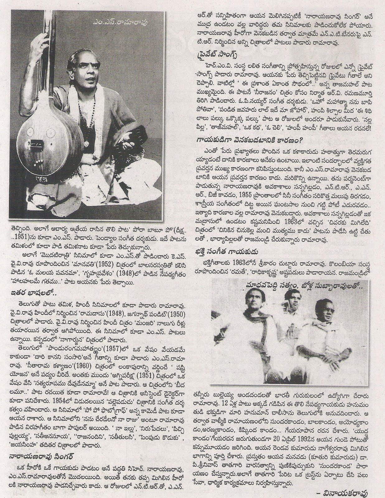 తొలి నేపధ్య గాయకుడు యం,ఎస్.రామారావు