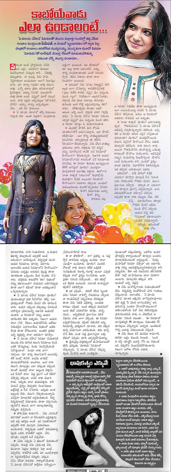 ‘అందం ఉంటే చాలదు, నటన వస్తేనే సరిపోదు. మంచి పాత్రలు రావాలి. అప్పుడే కథానాయికలు కాస్తా స్టార్లవుతారు’ ఈమధ్య ప్రముఖ దర్శకుడు కె.రాఘవేంద్రరావు సమంతని ఉద్దేశించి అన్నమాటలివి. సమంత ఎప్పుడో స్టార్ అయిపోయింది. కానీ… ఆమెకు గొప్ప పాత్రలు ఇప్పుడే ఎదురవుతున్నాయి, కాదుకాదు మంచి మంచి పాత్రలకు తానే ఎదురెళుతోంది. విభిన్నమైన పాత్రలని ఎంచుకుని విజయాల్ని అందుకుంటోంది. కెరీర్లో మాంచి దూకుడుమీదున్న సమంతని ‘మీకు బాగా నచ్చిన మీ పాత్రలేంటి?’ అని అడిగితే – ఒక్కోదాని గురించీ ఇలా చెప్పుకొచ్చింది.