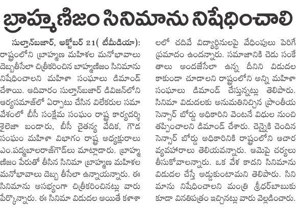 ‘బ్రామ్మణిజం’ చిత్రాన్ని నిషేదించాలి