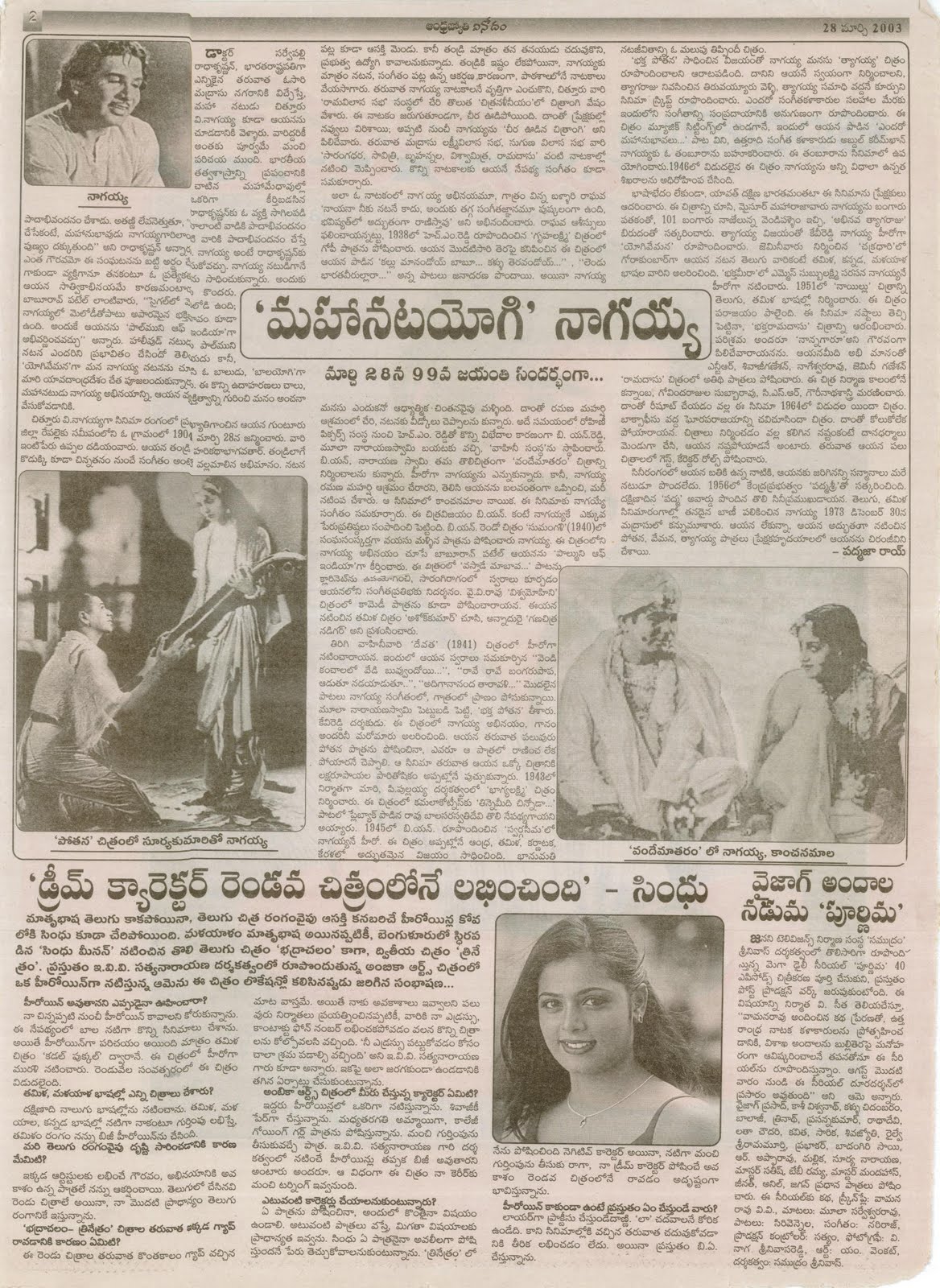 తెలుగు సినిమా తోలి కధానాయకుడు. సకల కళావల్లభుడు, సంగీత కళాకోవిదుడు, మహానటుడు, రచయుత, గాయకుడు, నిర్మాత, దర్శకుడు, సాటిలేని “తనపోతన మనవేమన” అలనాటి తెలుగువారి తెరవేల్పు పద్మశ్రీ చిత్తూరు వి.నాగయ్య.