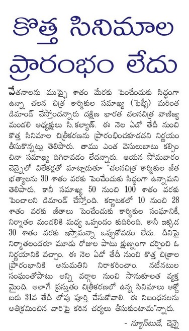 సినిమా రంగం లో ‘సమ్మె’ సైరన్ మ్రోగింది